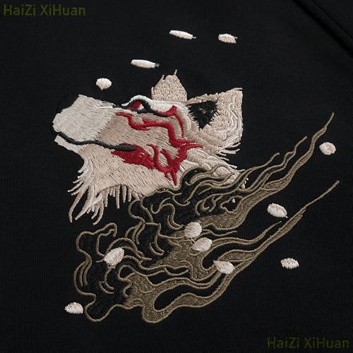 Mens Nine Tailed Fox Embroidered Hoodie Japanese Anime Hoodies Streetwear Black Hoodie Men Fashion Casual Hoodie 6