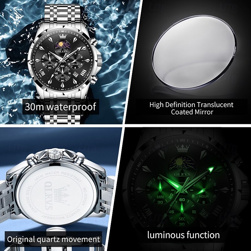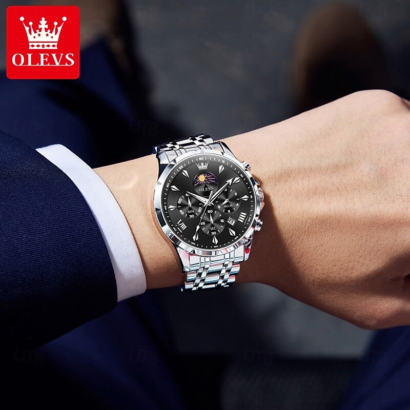 $44.99 - OLEVS 3653 Mens Watch Quartz Watch Multifunctional Chronograph Watch For Men 30M Waterproof Luminous Moon Phase Steel Watch 2025. Shop for cheap Quartz Watches online? Buy at lightinthebox.com on sale today!