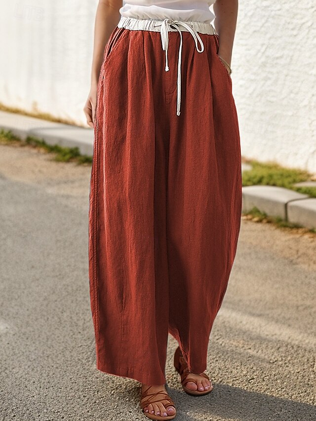 HOT ! Women's Cotton Linen Pants Chinos Baggy Pants Casual Daily Comfort Full Length High Waist Solid Colored Patchwork Pocket Drawstring Breathability Comfortable Micro-elastic Casual Daily Wear Orange