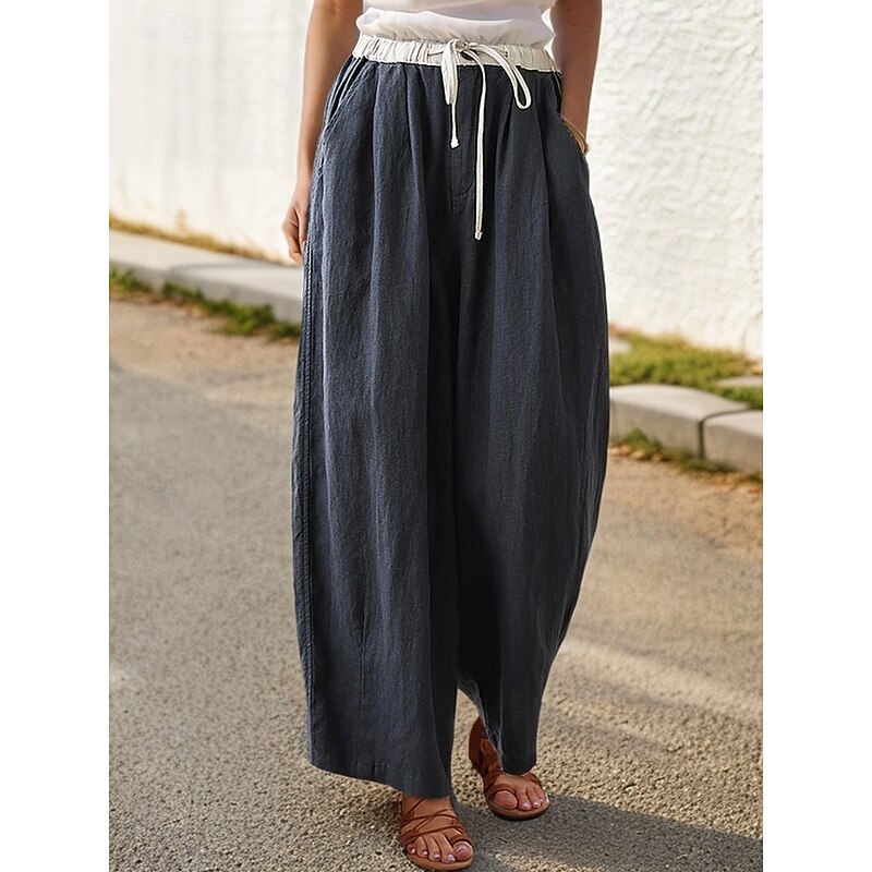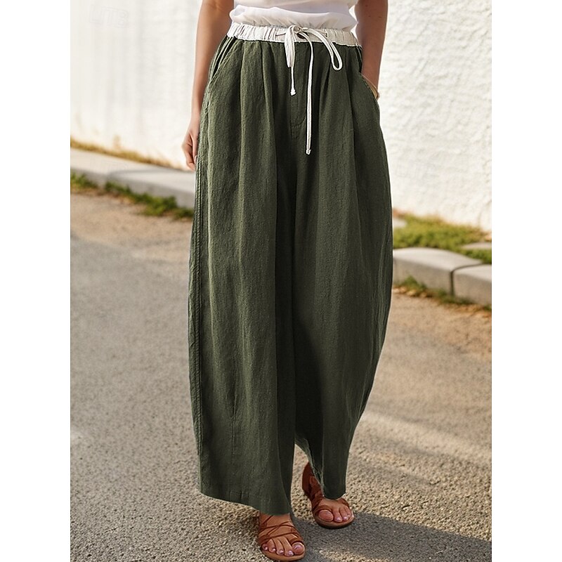 More information about Women's Cotton Linen Pants Chinos Baggy Pants Casual Daily Comfort Full Length High Waist Solid Colored Patchwork Pocket Drawstring Breathability Comfortable Micro-elastic Casual Daily Wear Orange