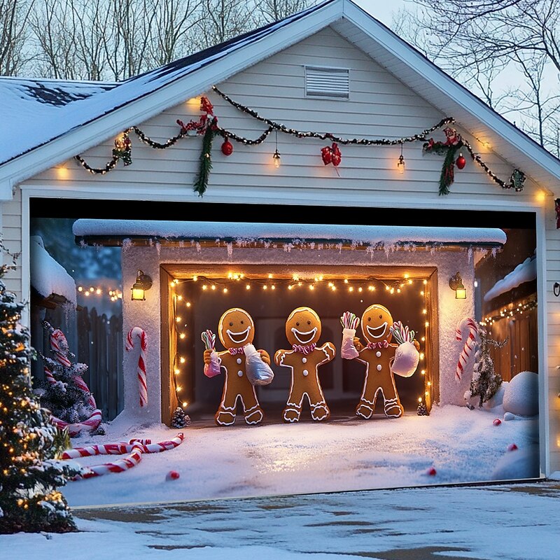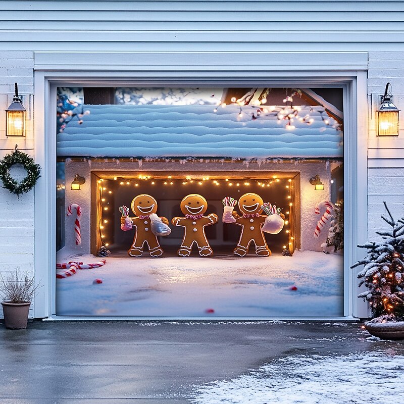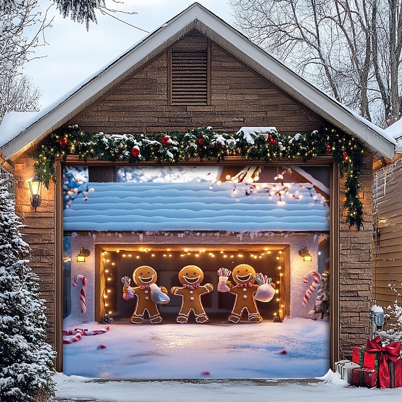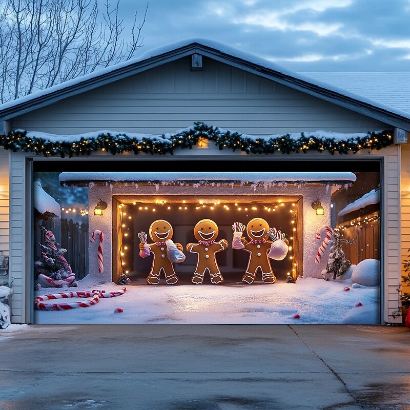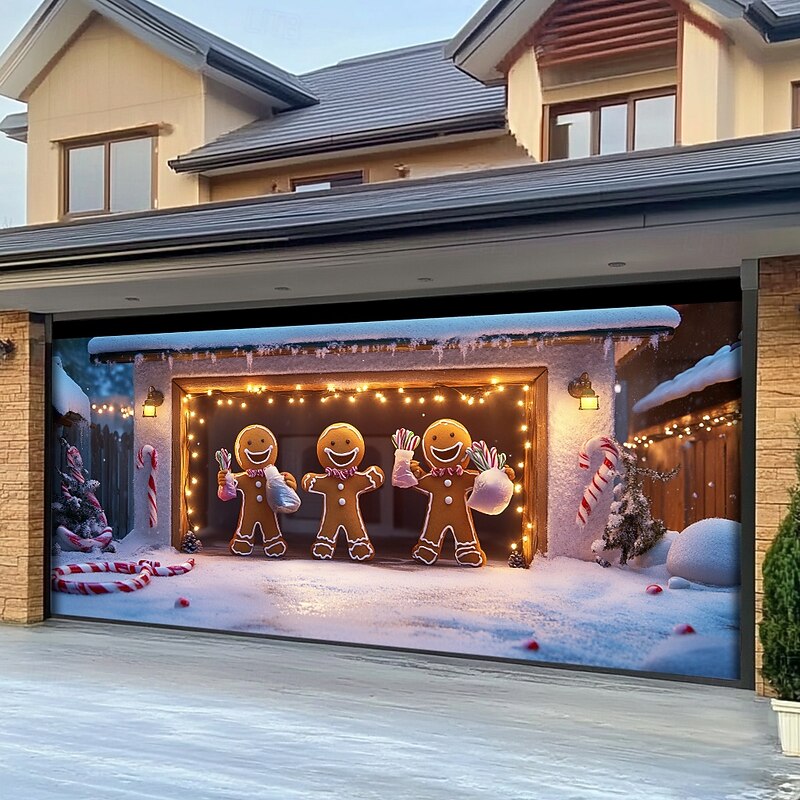 Christmas Door Decorations Outdoor Garage Door Cover Xmas Banner Gingerbread Man Large Christmas Backdrop for Holiday Outdoor Garage Door Home Wall Decorations 31