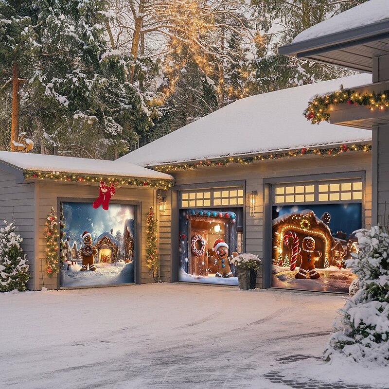 Christmas Door Decorations Outdoor Garage Door Cover Xmas Banner Gingerbread Man Large Christmas Backdrop for Holiday Outdoor Garage Door Home Wall Decorations 11