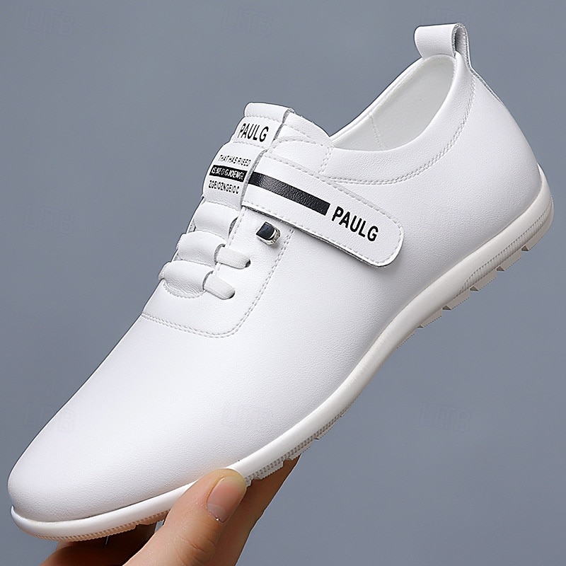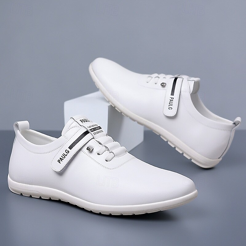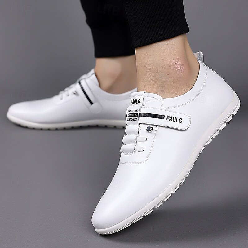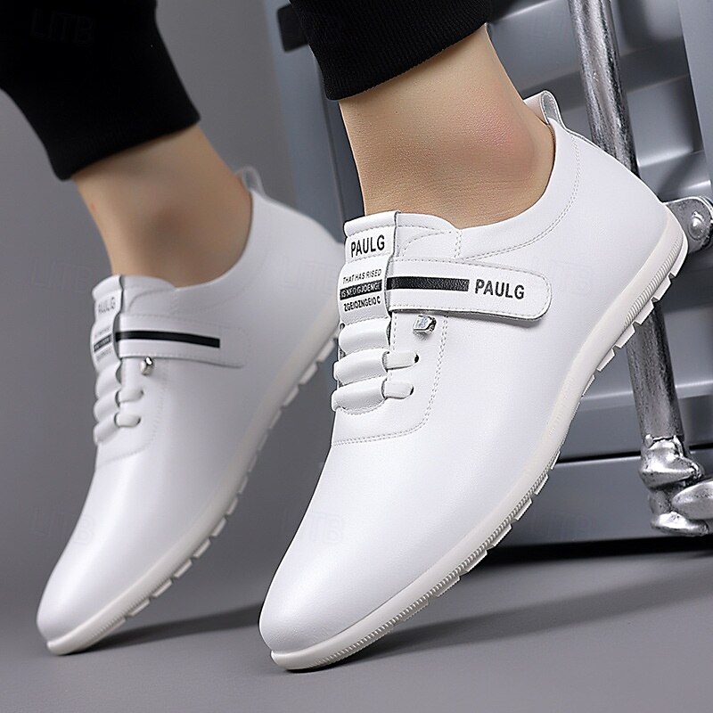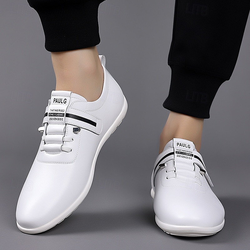 HOT ! Men's White Slip-On Sneakers with Stripe Design – Fashionable Shoes for Casual Outings and Weekend Activities