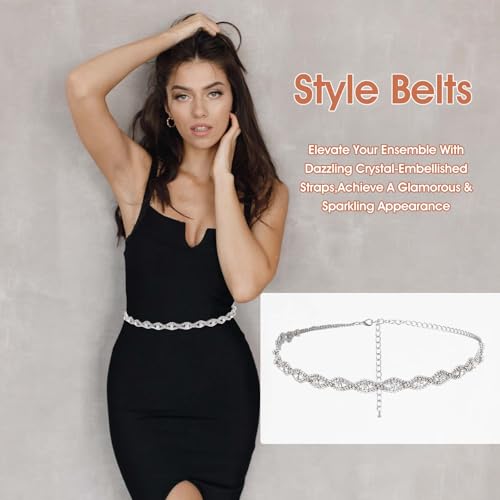 • 【Elegant Design】The rhinestone belts for women feature a stunning silver design with sparkling rhinestones, adding a touch of glamour to any outfit. Sparkly belts for women is perfect for formal events or casual wear.
