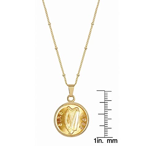 American Coin Treasures Pendant Irish Half Penny Coin Necklace- Saturn Style 18+3 Inch Extender Chain- Goldtone Bezel- Harp Obverse Side 7