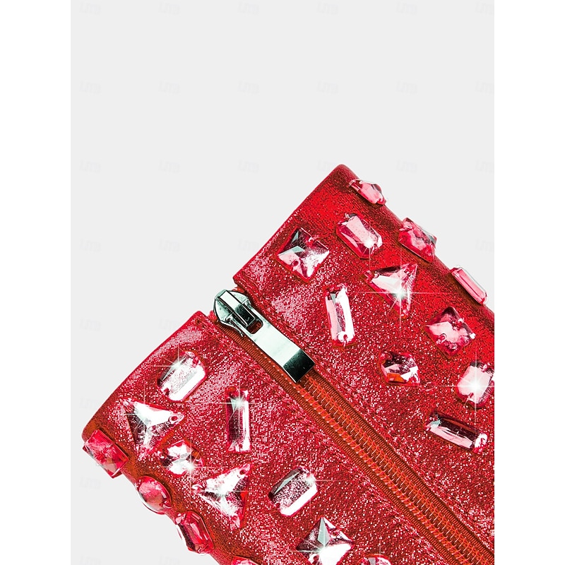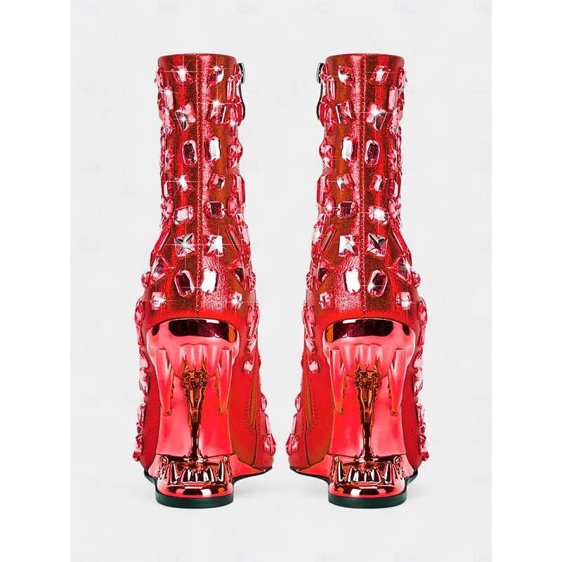 Highlights [Fabric and Material] : These women's ankle boots feature sparkling glitter as the upper material, complemented by synthetic leather lining for a luxurious and comfortable feel. The foam rubber outsole ensures durability and ease of movement. [Silhouette and Fit] : Designed as pointed-toe booties, these ankle boots offer a sleek and elegant silhouette. The standard size recommendation ensures a perfect fit, allowing you to select your usual size with confidence. [Design Highlights] : The standout feature of these high-heeled boots is their sculptural heel, which boasts a unique cut-out design. Embellished with rhinestones and geometric studs, these boots create a striking, avant-garde aesthetic perfect for making a bold fashion statement. [Occasions] : Ideal for parties, clubs, and fashion events, these ankle boots are designed to turn heads. Whether you're attending a glamorous event or enjoying a night out, they add a touch of sexy, gothic luxury to any outfit. [Size Range] : Available in a range of sizes including US6 to US10.5 (EU36 to EU42), these boots cater to a variety of foot sizes, ensuring that you can find the perfect fit for your needs.