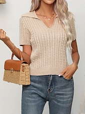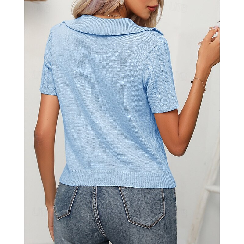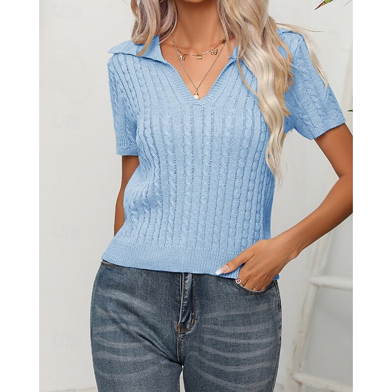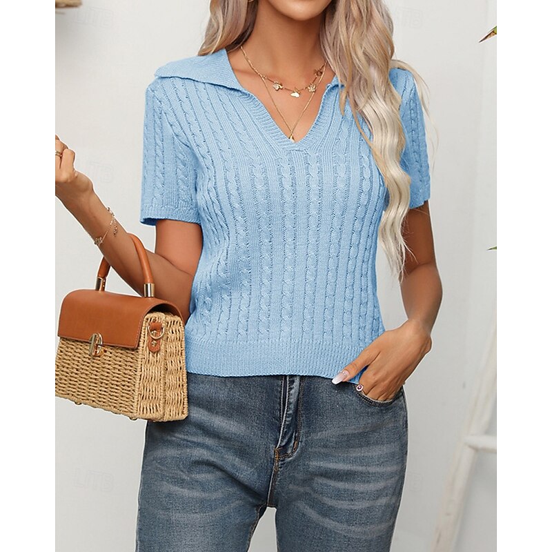 More information about Women's Pullover Casual Solid Color Chunky V Neck Knitted Short Sleeves Regular Tops Knit Daily Holiday Going out Blue Orange Summer
