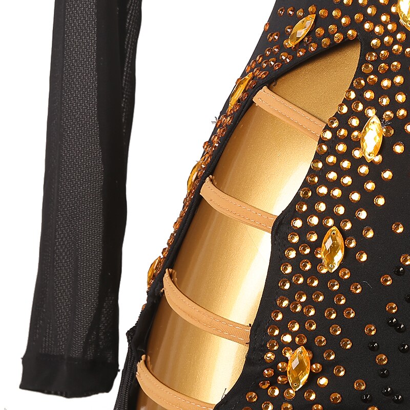 Latin Dance Dress Tassel Crystals / Rhinestones Women's Performance Long Sleeve Chinlon Mesh 11