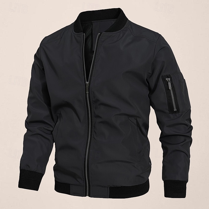 More information about Men's Bomber Jacket Transition Jacket Going out Pocket All Seasons Plain Classic Stand Collar Regular Black Navy Blue Gray Jacket