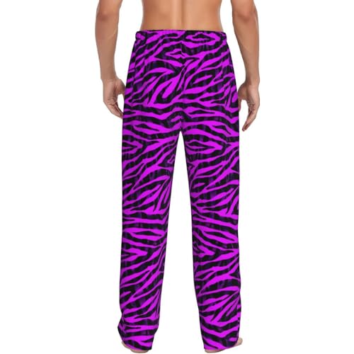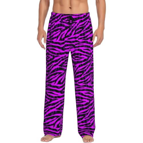 HOT ! Mens Pajama Pants - Black Purple Zebra Print Soft Sleep Lounge Pants For Men, Casual Pj Bottoms With Pockets