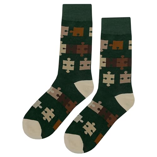 Puzzle Dress Socks 4 Pack Funny Novelty Crazy Fun Design Men Size 8-12 Cotton Casual Crew Colorful Funky Fancy Socks Gift for Men 5