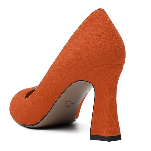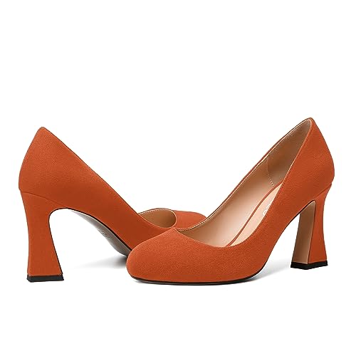 HOT ! NUMALEO Womens Wedding Suede Fashion Round Toe Slip On Stylish Block High Heel Pumps Shoes 3.3 Inch