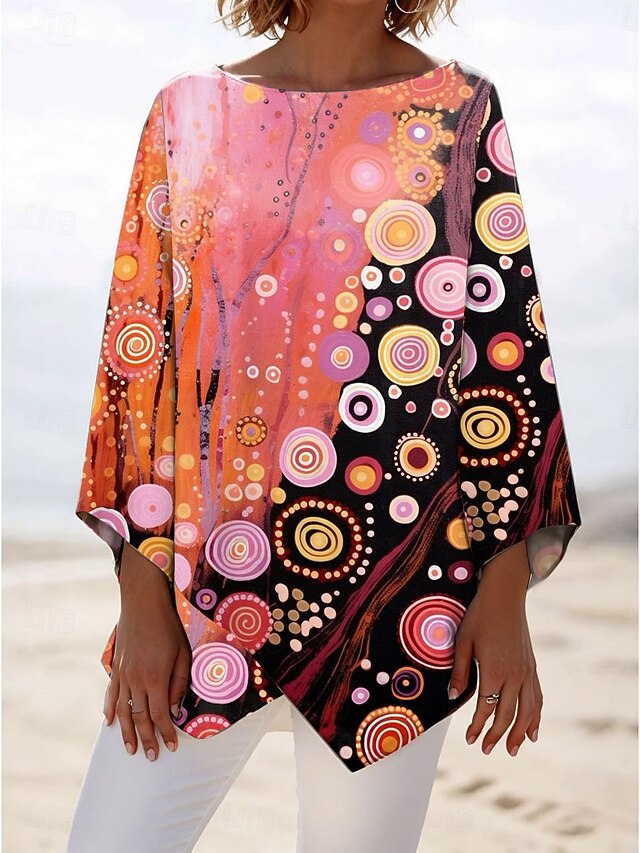 More information about Women's Blouse Long Sleeve Asymmetrical Hem Ombre Graphic Polka Dot Stylish Beach 3/4 Length Sleeve Crew Neck Regular Tops Daily Print Pink Blue Orange Spring Fall
