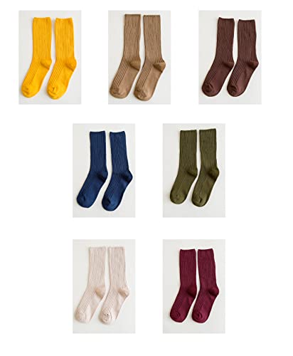 HOT ! Womens Cotton Crew Socks Soft Cotton Casual Solid Color Socks Stretchy Above Ankle Socks for Women Girls 7Pairs
