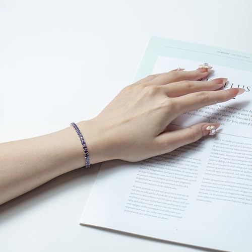 • 【Amethyst Tennis Bracelet】 The tennis bracelet is set with 31 pieces Amethyst stones, make the bracelet look so sparkling and stylish. Wearing it you will be more shinning in any occasions