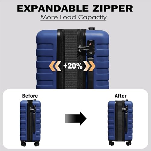 HOT ! Zebra 20" Expandable Carry-On Luggage Set with TSA Lock, Lightweight Hardshell Suitcase with Spinner Wheels, PC+ABS Durable Checked Luggage, Bonus Travel Backpack & Cosmetic Makeup Bag, Navy Blue