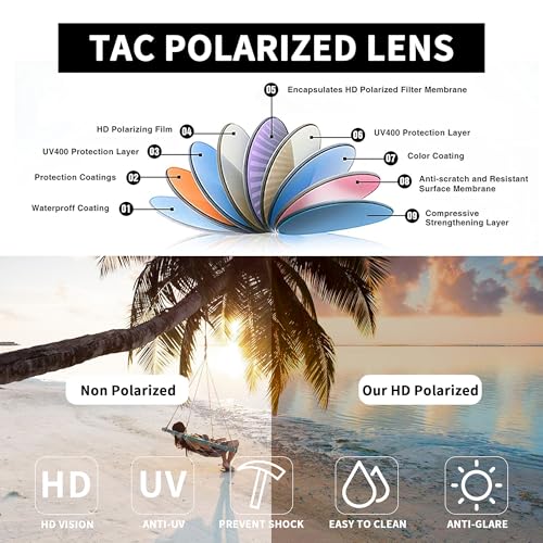 • High-Definition UV400 Lenses – JM's HD lenses can filter out sunlight reflected glare,protecting your eyes from long-term damage by blocking 99% of harmful UVA and UVB rays.
