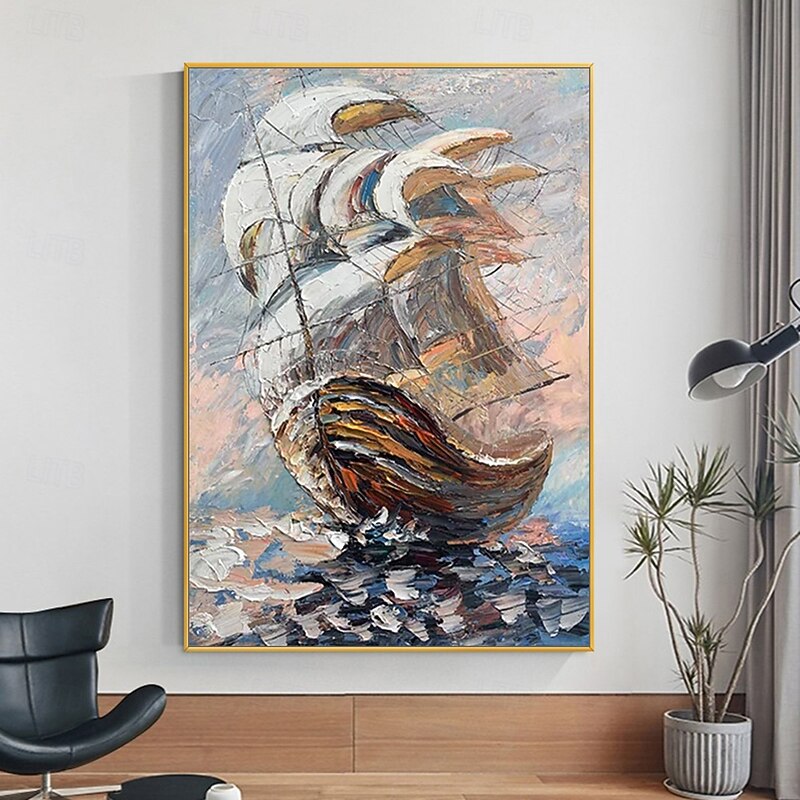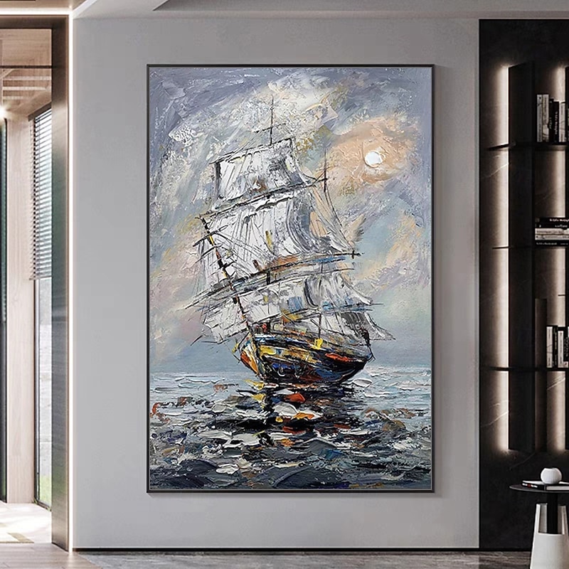 Mintura Handmade Abstract Bost Landscape Oil Paintings On Canvas Wall Art Decoration Modern Picture For Home Decor Rolled Frameless Unstretched Painting 1