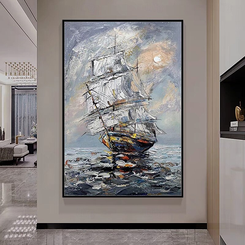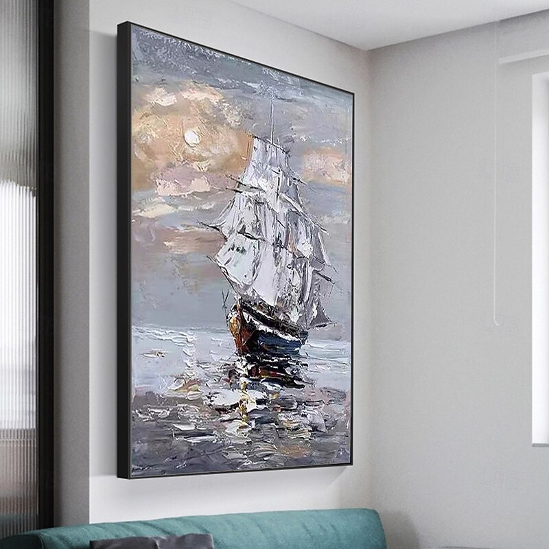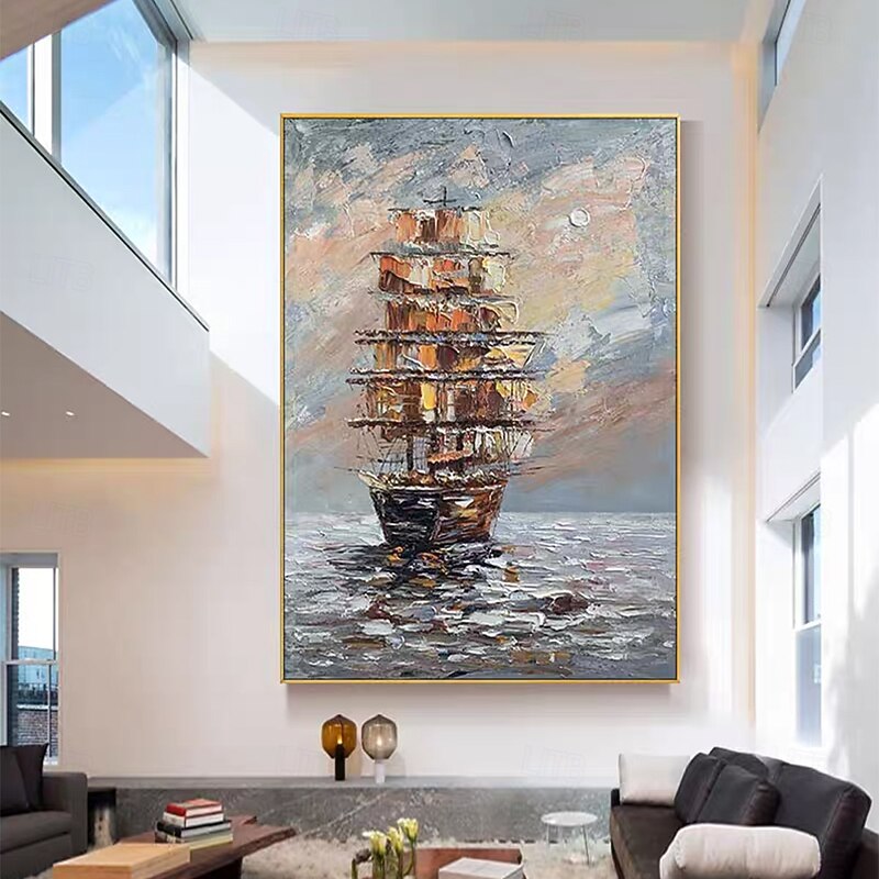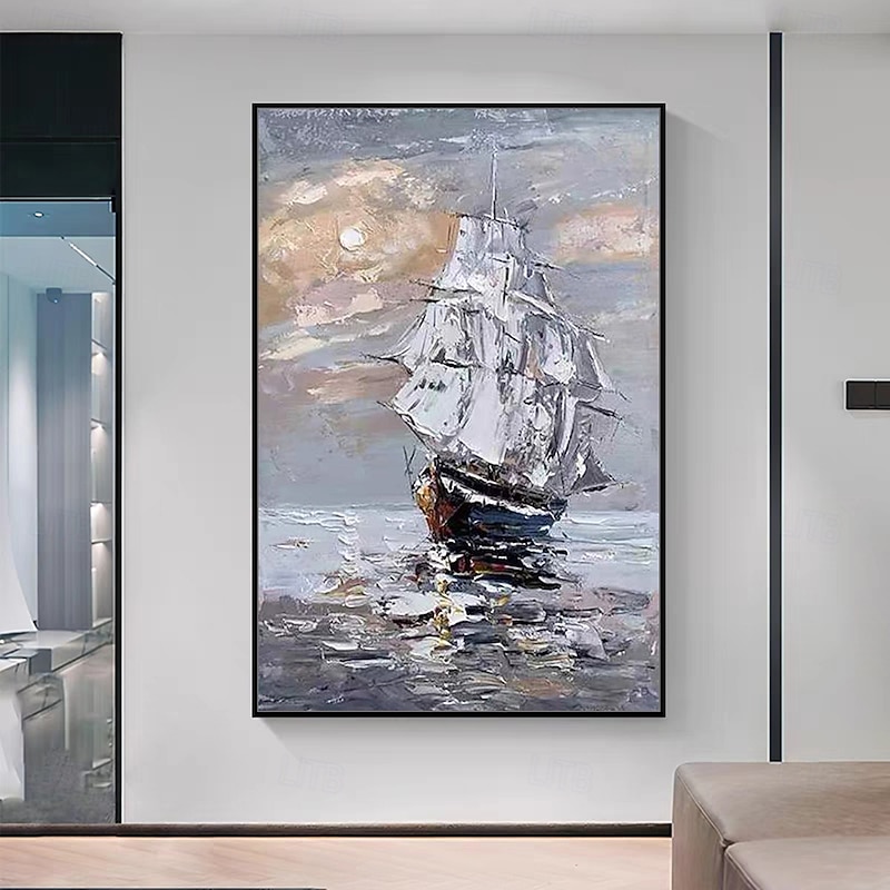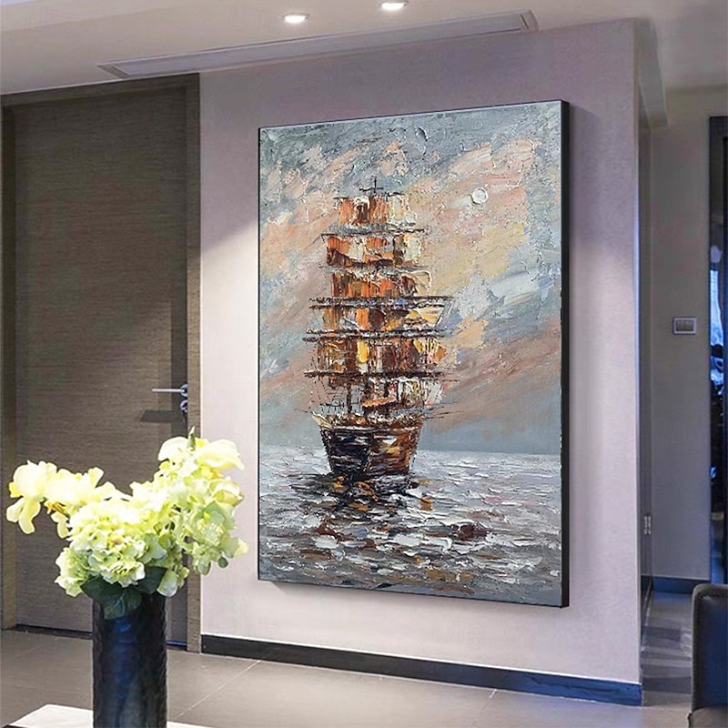 Mintura Handmade Abstract Bost Landscape Oil Paintings On Canvas Wall Art Decoration Modern Picture For Home Decor Rolled Frameless Unstretched Painting 7