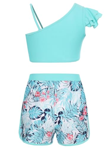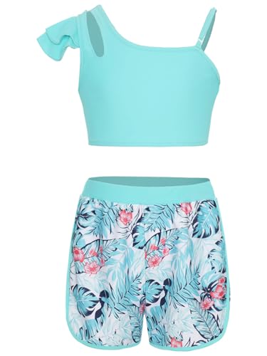 Choomomo Girls Three Pieces Rash Guard Swimsuit Long Sleeves Zip-up Swim Top with Tankini Tops and Swim Shorts Set Swimwear 6