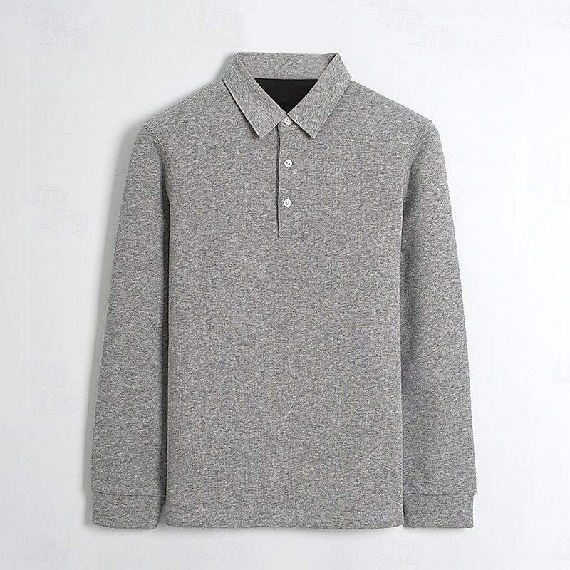 HOT ! Men's Polo Work Street Turndown Long Sleeve Warm Vintage Solid Color Buttons Fall Winter Regular Fit Pearl White Black Navy Blue Grey Polo