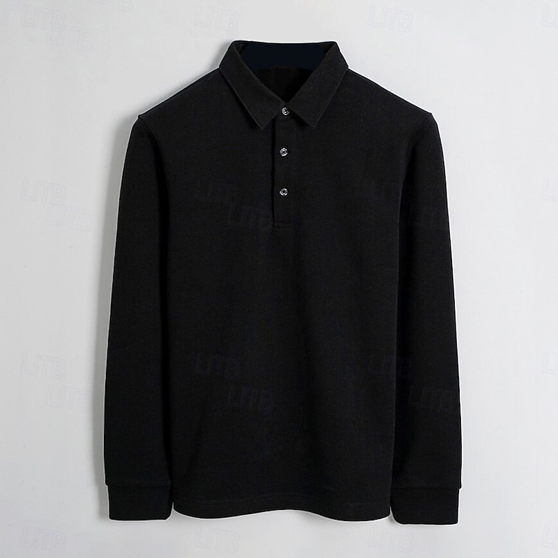 More information about Men's Polo Work Street Turndown Long Sleeve Warm Vintage Solid Color Buttons Fall Winter Regular Fit Pearl White Black Navy Blue Grey Polo