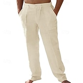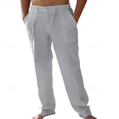 More information about Men's Linen Pants Trousers Summer Pants Beach Pants Pocket Drawstring Plain Comfort Breathable Full Length Vacation Daily Holiday Hawaiian Boho Dark Khaki Black