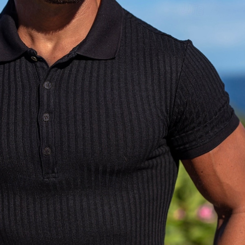 More information about Men's Button Up Polos Casual Button Classic Short Sleeve Basic Solid Color Buttons Summer Black White Burgundy Navy Blue Green Khaki Button Up Polos