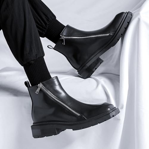 More information about Men Polished Leather Platform Square Chukka Ankle Boots With Side Zipper Comfortable Fashion Chunky Block Heel Lug Sole Non Slip Chelsea Business Boot For Party Formal Work