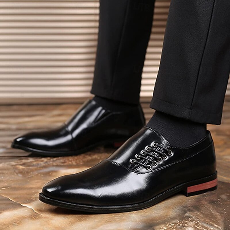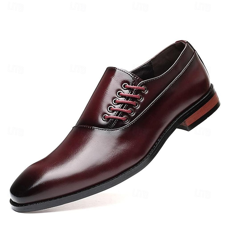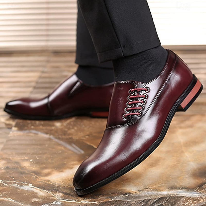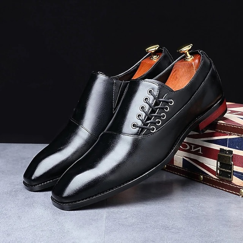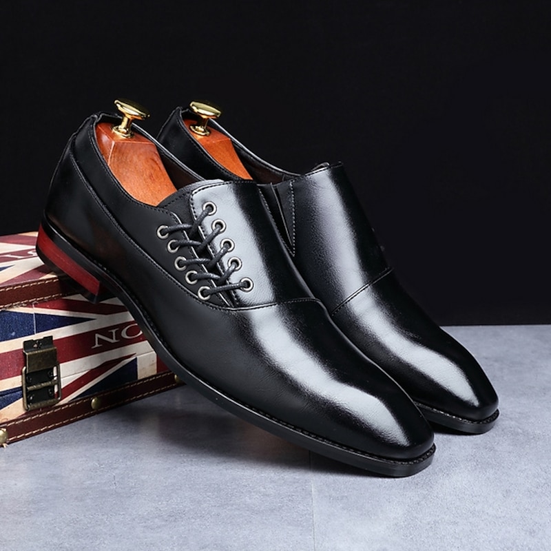 Highlights - Premium faux leather cap toe oxford dress shoes for a classic look. - Unique lace up design adds a touch of style to your outfit. - Stay comfortable all day with soft lining and odor-free insoles. - Lightweight and breathable materials make walking a breeze. - Provides slip-resistant and shock protection for added safety. - Perfect for work and formal occasions like weddings.