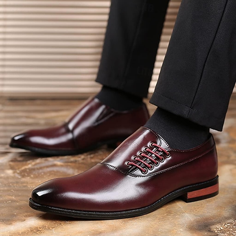 Men's Classic Brown Leather Dress Shoes - Ideal for Formal Events and Business Meetings 1