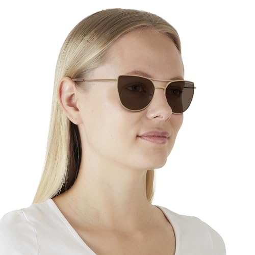 • FRAME FEATURES: AX2045S sunglasses feature a cat eye, shiny pale gold frame with a double bridge and dark brown lenses.