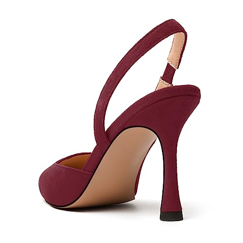 JUSTDANNI Womens Suede Sexy Slingback Comfortable Evening Elastic Pointed Toe Stiletto High Heel Pumps Shoes 3.3 Inch 4