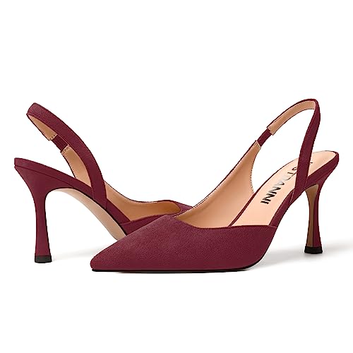JUSTDANNI Womens Suede Sexy Slingback Comfortable Evening Elastic Pointed Toe Stiletto High Heel Pumps Shoes 3.3 Inch 7