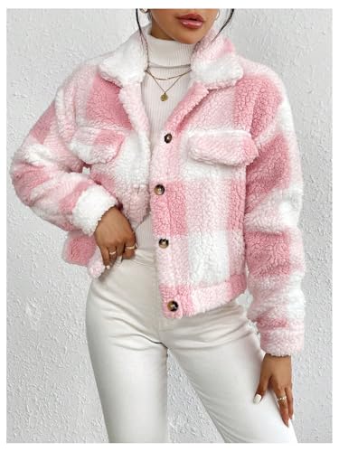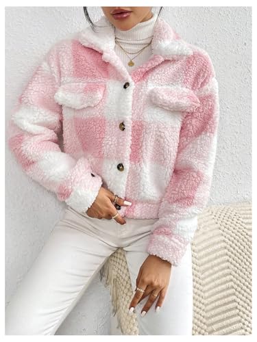 SOLY HUX Women's Plaid Fleece Jacket Button Down Long Sleeve Drop Shoulder Fuzzy Sherpa Jacket Outerwear 6