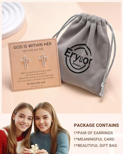 • Cross Mustard Seed Earrings: These cross stud earrings feature a mustard seed, a symbol of faith and hope. With the card "God is within her, she will not fall." making it an inspirational gift.