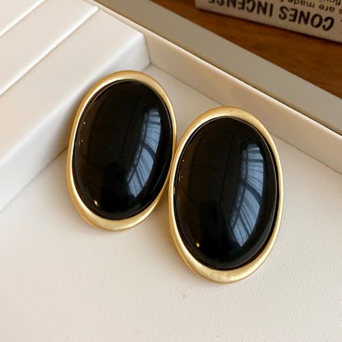 HOT ! Chunky Statement Earrings for Women,Vintage Black Oval Large Dangle Earrings Gold Geometric Studs Earring,Simple Everyday Jewelry Accessories Gifts