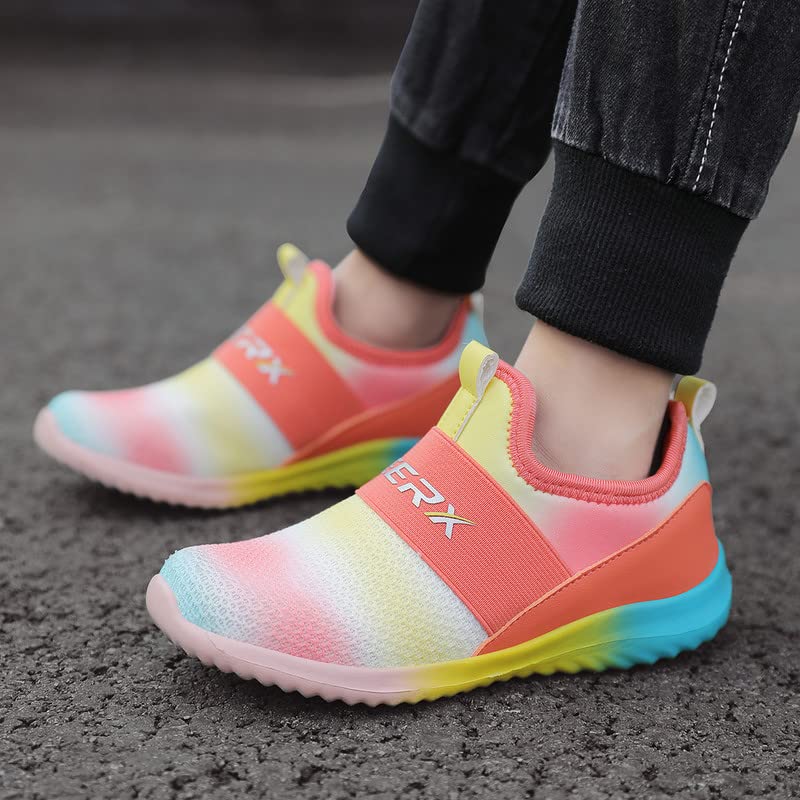 • SLIP ON AND GO: These colorful shoes for girls are designed as an easy slip on shoe which are equipped with comfortable honeycomb design shock absorbing insole for enhanced all-day comfort.