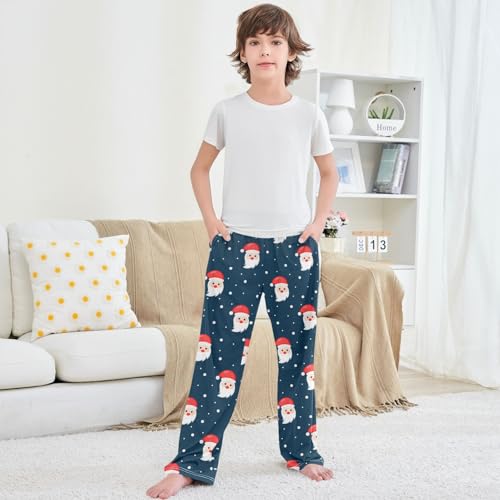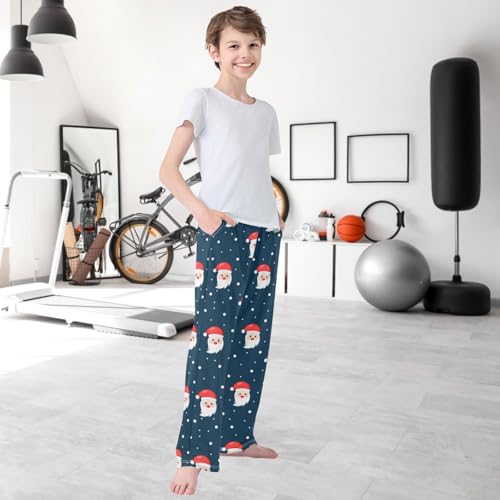 Boy's Lounge Pants Christmas Santa Claus Dark Blue Kids Jogger Pants Elastic Waist Long Bottoms with Pockets 6-14 Y 6