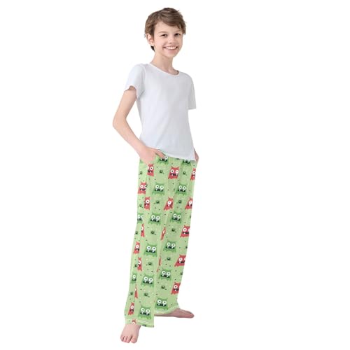 ALAZA Red and Green Monster Cartoon Pajamas Bottoms with Pockets Comfy Pjs Sleepwear Elastic Waistband Pajamas Pants Lounge Pants for 6-14 Years 1