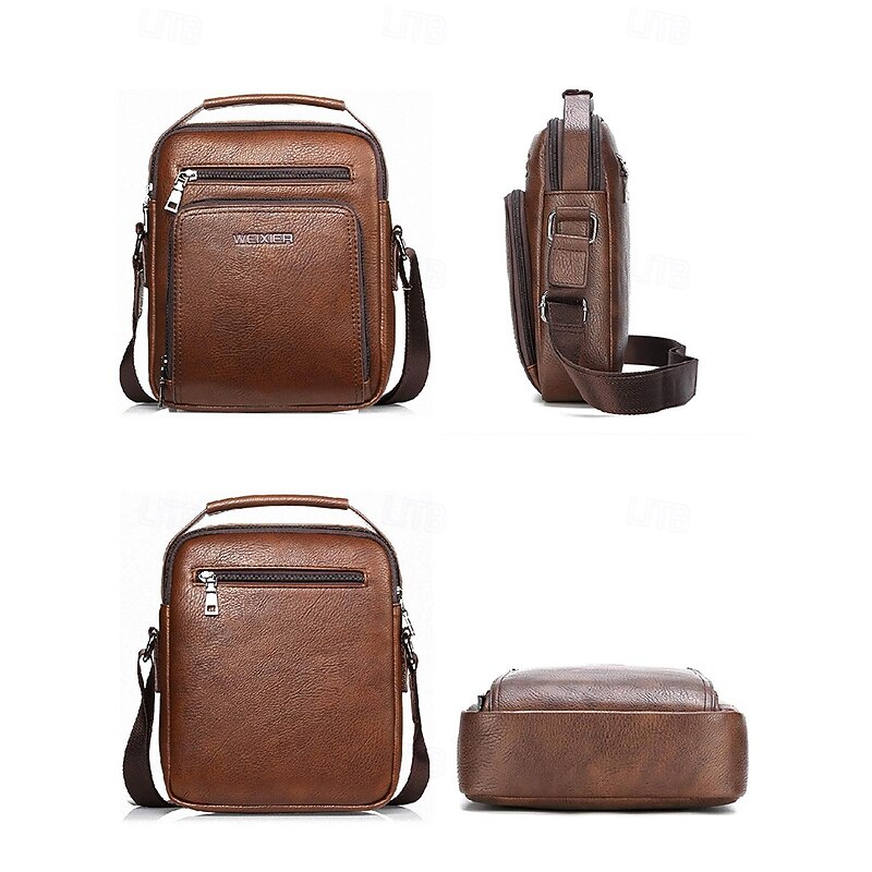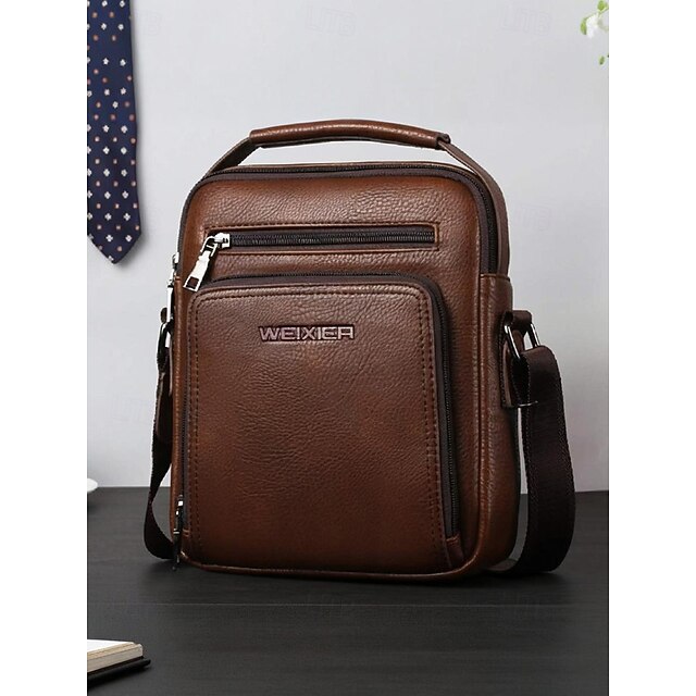 $24.99 - Men's Brown Black Faux Leather Crossbody Messenger Bag with Multiple Zipper Compartments for Business Travel and Daily Office Use 2025. Shop for cheap Men's Bags online? Buy at lightinthebox.com on sale today!
