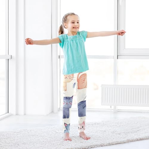 Watercolor Lovely Cats Background Printed Girls Elastic Leggings Casual Yoga Pants for Kids 6