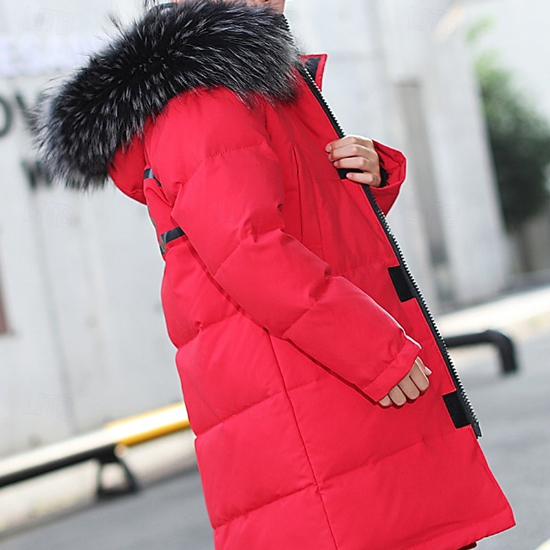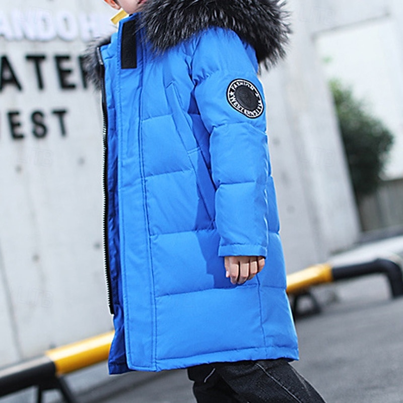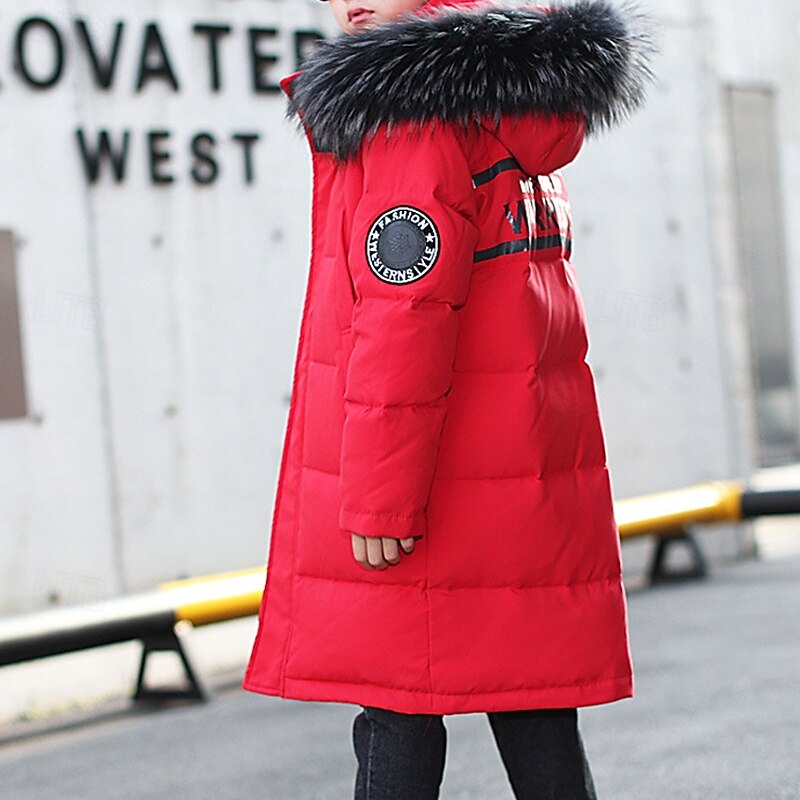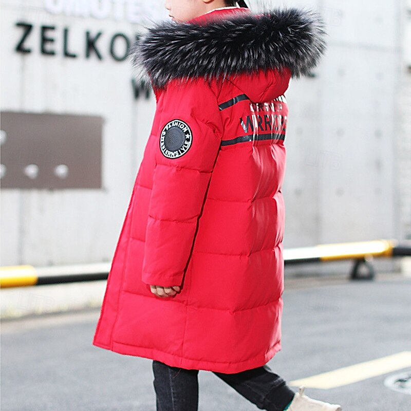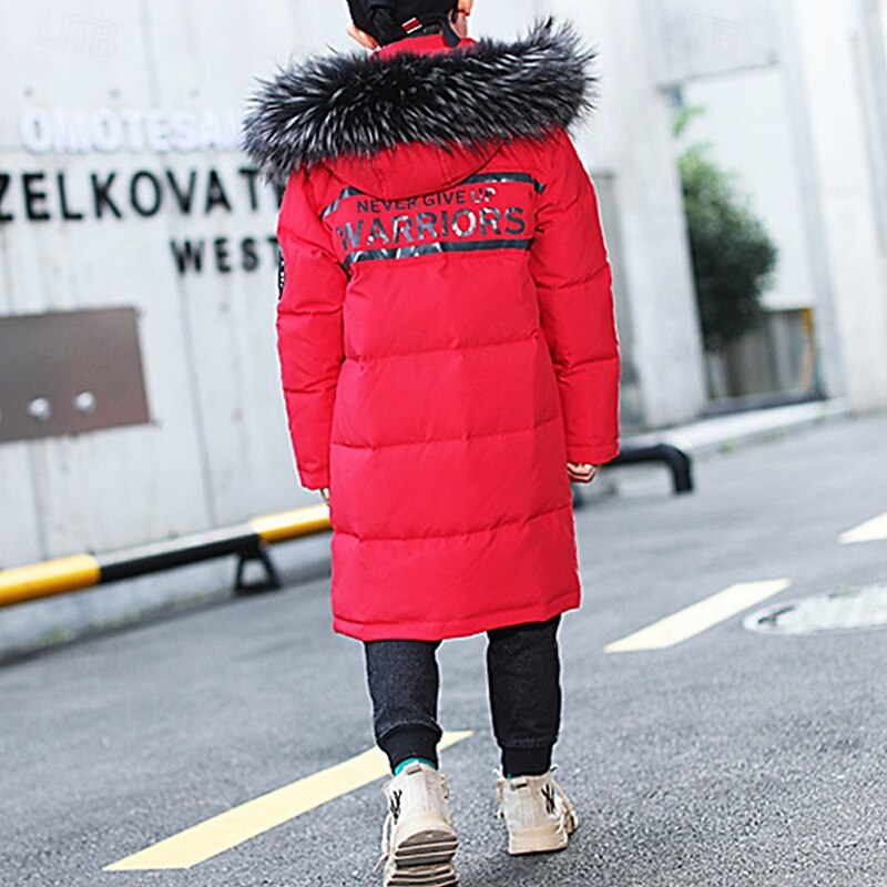 More information about Kids Boys' Down Coat Hoodie Jacket Puffer Jacket Outerwear Letter Long Sleeve Pocket Coat Outdoor Daily Basic Black Red Blue Fall Winter 4 years+