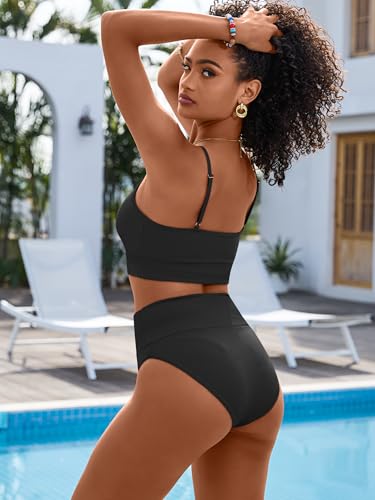 HOT ! ANRABESS Women High Waisted Bikini Sets Color Block Summer Beach Vacation 2 Piece Bathing Suit Tummy Control Ribbed Swimsuit