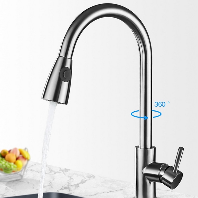 Kitchen Faucet with Pull-out Sprayer,Brushed Nickell Rotatable 304 Stainless Steel High Arc Single Handle One Hole Kitchen Taps 1