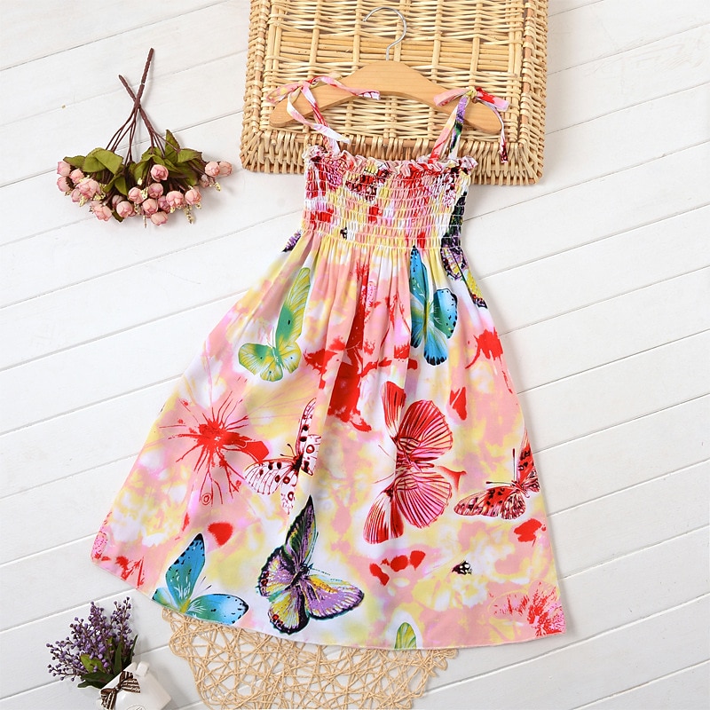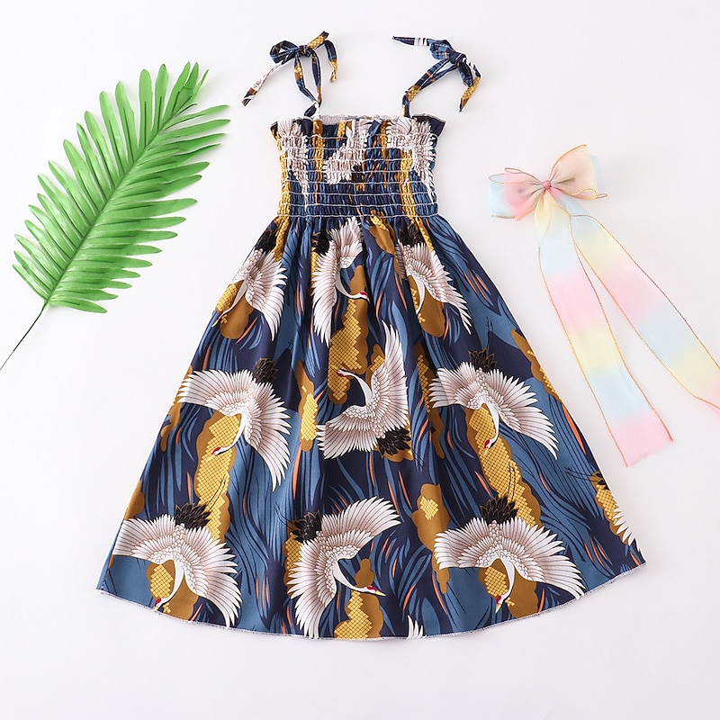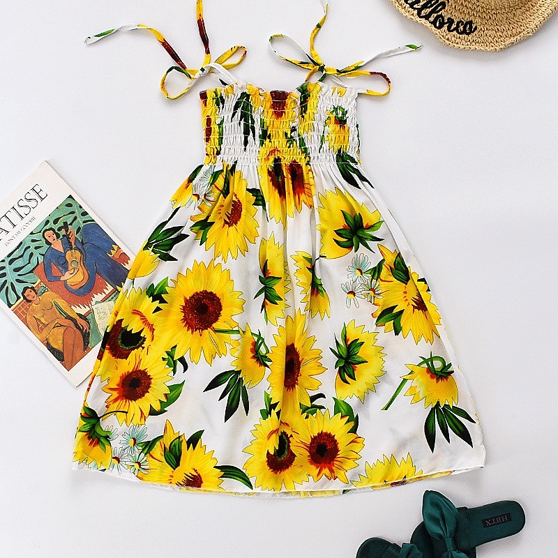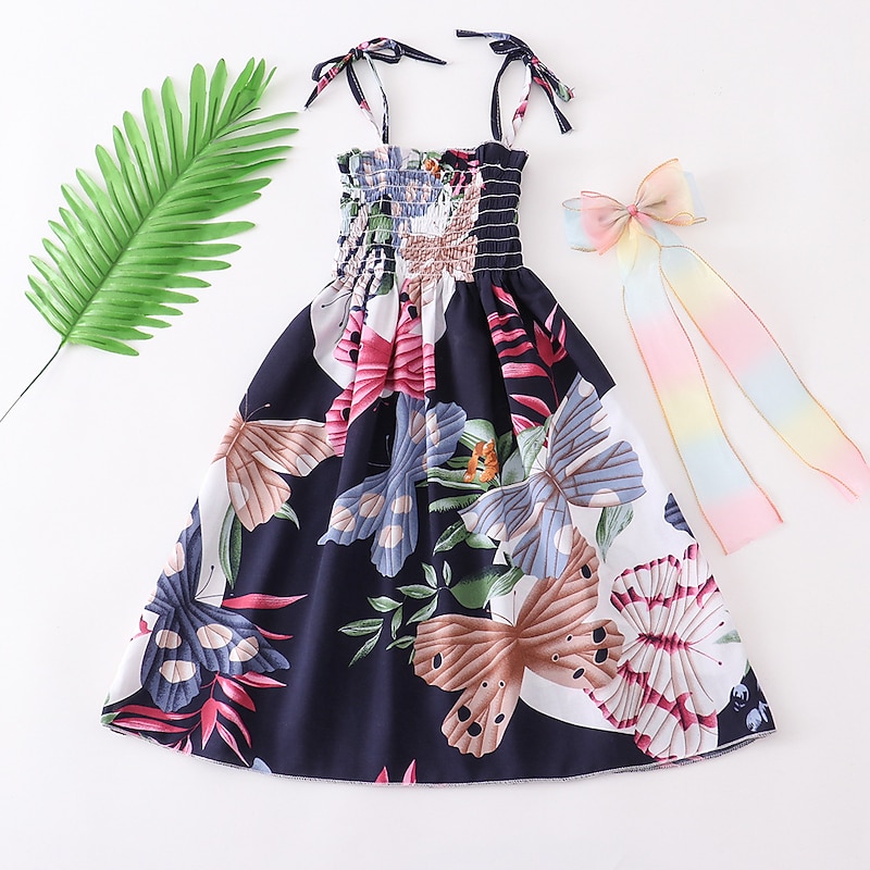 More information about Kids Little Girls' Dress Floral Strap Dress Daily Vacation Beach Print Green White Black Cotton Knee-length Sleeveless Basic Essential Casual Vacation Dresses Spring Summer Regular Fit 3-12 Years