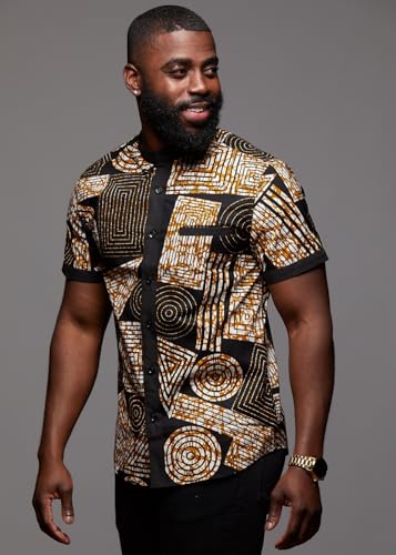 • UNIQUE AFRICAN PRINT DESIGN – Stand out with the Olu Short Sleeve Mandarin Button-Up, a formal Dashiki shirt in Black Brown Geometric. Featuring a distinctive African wax print pattern, this African shirt for men adds a touch of cultural flair to your wardrobe.