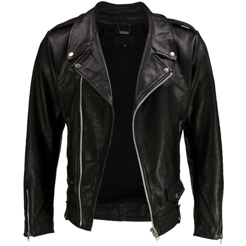 HOT ! DECIMAL Men's Black Genuine Lambskin Leather Biker Jacket VINTAGE REAL BROWN MOTORCYCLE JACKETS FOR MEN (US, Alpha, X-Large, Regular, Regular, BLACK R)