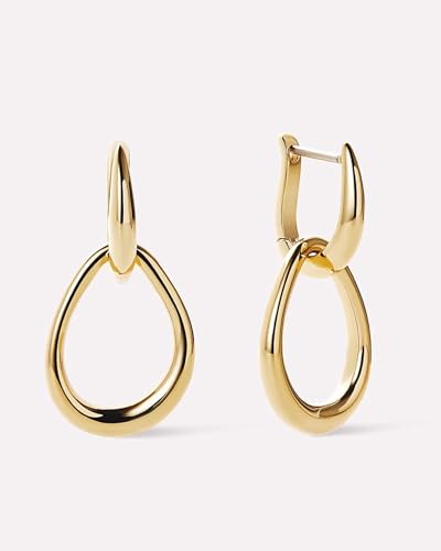 • Gold Earrings:Adorn your ears with these beautifully sleek gold drop earrings. Dipped in 14k gold, these double-ring hoops can be worn on their own or stand out in your earring stack.