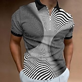 More information about Men's Graphic Zip Polo Shirts Golf Shirt Short Sleeve Polo Shirts Collared Shirts Vacation Wear Rave Wear Party Outfits 3D Print Quarter Zip Polo Summer Spring Black Blue